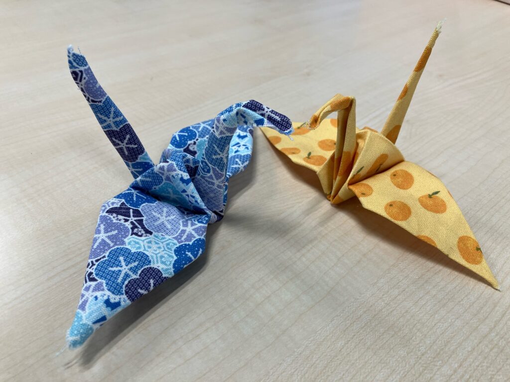 ■無量寺で祈祷いただいた三河木綿を使った折り鶴体験!